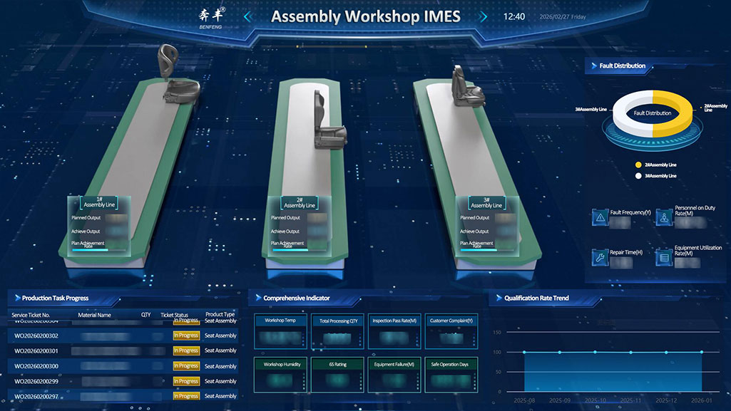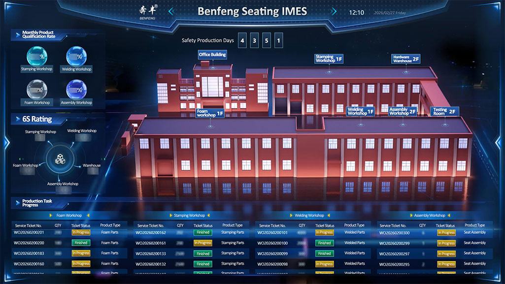 ในระบบนิเวศดิจิทัลของ Benfeng Seats IMES เวิร์กช็อปการประกอบซึ่งมีการจัดการกระบวนการอัจฉริยะเต็มรูปแบบ กลายเป็นพื้นที่ทดสอบขั้นสุดท้ายสำหรับคุณภาพของเบาะสำเร็จรูป