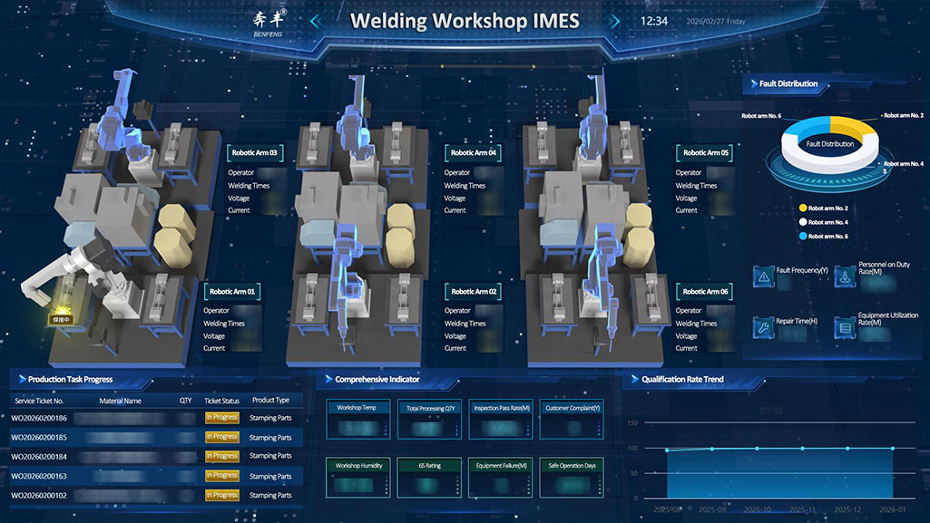 การประชุมเชิงปฏิบัติการนำเสนอการทำงานร่วมกันของแขนหุ่นยนต์เชื่อมอัจฉริยะหลายตัวผ่านเทคโนโลยีการสร้างภาพ 3 มิติอย่างชัดเจน แขนหุ่นยนต์แต่ละอันมีการติดตั้งผู้ปฏิบัติงานโดยเฉพาะและโมดูลตรวจสอบพารามิเตอร์ (แรงดันไฟฟ้า กระแส จำนวนการเชื่อม ฯลฯ) ทำให้ได้กระบวนการเชื่อมที่แม่นยำและควบคุมได้ พร้อมทั้งตรวจสอบตัวบ่งชี้สำคัญ เช่น อุณหภูมิ ความชื้น และจำนวนการเชื่อมต่อวันแบบเรียลไทม์ เพื่อให้มั่นใจในคุณภาพการเชื่อมจากทุกมิติ ตั้งแต่สภาพแวดล้อมไปจนถึงกระบวนการ