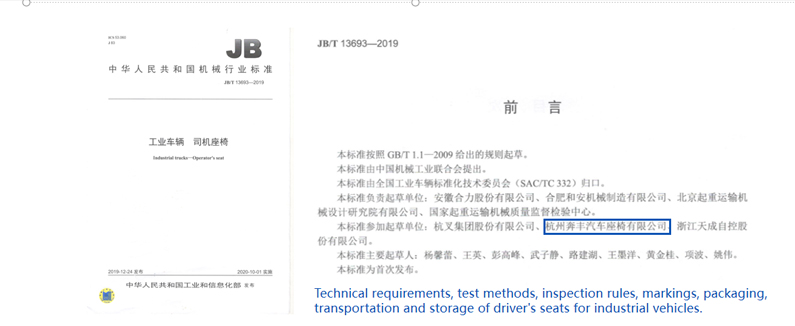 (ข้อกำหนดทางเทคนิค วิธีทดสอบ กฎการตรวจสอบ เครื่องหมาย การบรรจุ การขนส่ง และการจัดเก็บที่นั่งคนขับสำหรับยานพาหนะอุตสาหกรรม)